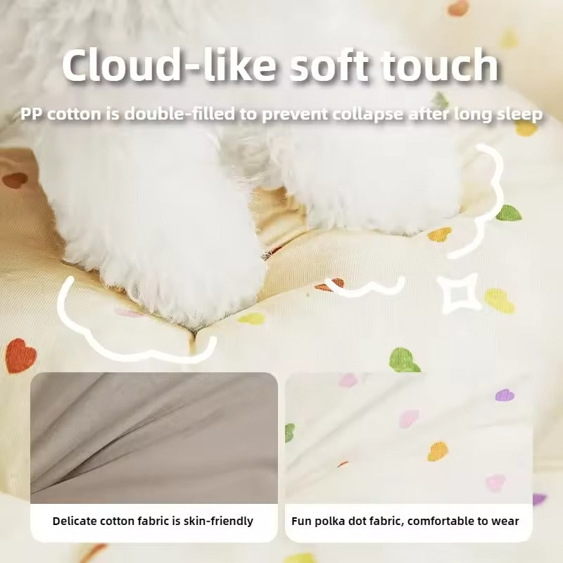 Chic & Playful Design: The dotted pattern and elegant bow accent blend effortlessly with any home décor, transforming your pet’s bed into a stylish statement piece that’s as decorative as it is functional.
